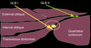 腰方形筋ブロック(QLB)にはQLB1とQLB2が存在します(現在、QLB3も報告されています→QLB3)。
